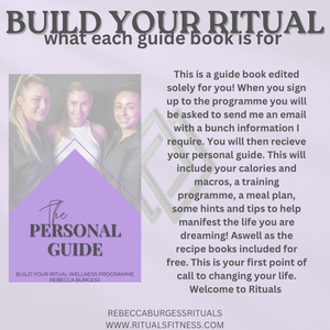 This is a guidebook edited solely for you! When you sign up for the programme, you will be asked to send me an email with a bunch of information I require. You will then recieve your personal guide. This will include your calories and macros, a training programme, a meal plan, and some hints and tips to help manifest the life you are dreaming!
